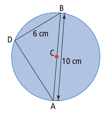 1. Point C is the centre of the circle. Diameter AB = 10 cm chord BD = 6 cm. What is the length of the AC?